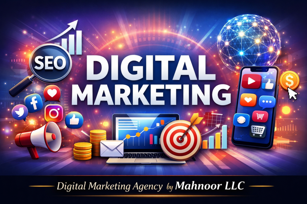 At Mahnoor LLC, we help businesses grow through data-driven digital marketing, SEO, social media management, paid ads, and AI automation.